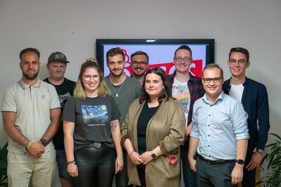 Foto v.l.: Omid Hatam, Cedric Klingel, Indira Lauer, Elias Engel, Michael Hofsäss, Ajka Sadovic, Lukas Veile, Davis Riedel, Robin Burghardt