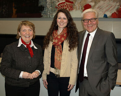 Die Schülerin Carolin Vogt vom Melanchthon Gymnasium Bretten erfuhr beim Fraktionsfrühstück mit Frank-Walter Steinmeier und Katja Mast, SPD-Bundestagsabgeordneten für die Menschen aus Pforzheim und dem Enzkreis, dass mehr Gerechtigkeit bei der SPD auch immer für mehr Geschlechtergerechtigkeit steht. "Es gehört Mut dazu, als junge Frau Politik zu machen. Wir brauchen Euch, engagiert Euch“, sind sich Katja Mast und Frank-Walter Steinmeier einig