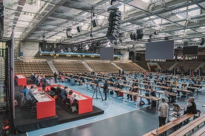 Bei einem überwiegend digital durchgeführten Parteitag hat die SPD Baden-Württemberg erfolgreich ihre Landesliste für die Bundestagswahl 2021 aufgestellt. Der SPD-Landesvorstand und die Bundestagsnominierten hatten dabei die Möglichkeit unter strengen Hygiene-Auflagen und nach einem Corona-Test in der EWS-Arena in Göppingen vor Ort zu sein, die 320 Delegierten haben elektronisch von zuhause aus über die 36 Listenplätze abgestimmt.