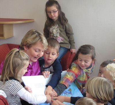 Katja Mast liest im Kinderhaus in Salmbach aus dem „Regenbogenfisch“ vor